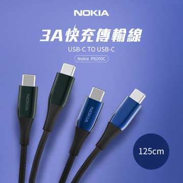 【NOKIA諾基亞】經典極速充電線TypeC TO C 125CM 3A-P8200C