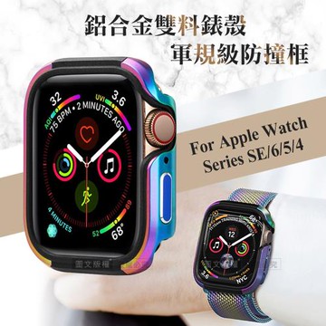 軍盾防撞 抗衝擊 Apple Watch Series SE/6/5/4 (44mm) 鋁合金雙料邊框保護殼(烈焰紅)