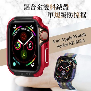 軍盾防撞 抗衝擊 Apple Watch Series SE/6/5/4 (44mm) 鋁合金雙料邊框保護殼(烈焰紅)