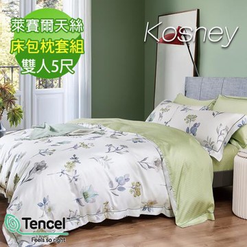 KOSNEY 葉影飄香 吸濕排汗萊賽爾天絲特大兩用被床包組
