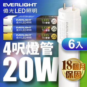 點我下載6入組 EVERLIGHT億光LED4呎20W T8二代玻璃燈管(白光/黃光/自然光)