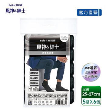 【蓓比適-風神紳士】透氣免洗襪 男女適用-黑色(5雙)*6包