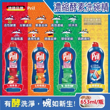 德國Henkel Pril-高效能活性酵素分解重油環保親膚濃縮洗碗精653mlx1藍瓶(廚房餐具,碗盤,料理鍋具清潔劑)