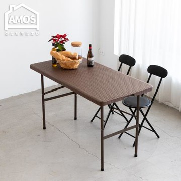 【Amos】120*60仿藤手提折疊戶外露營餐桌/摺疊桌