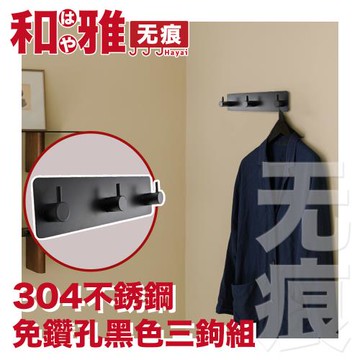 HaYai和雅 無痕系列 不銹鋼強力掛鉤 三鉤黑色
