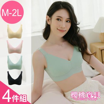 Cherry Baby (M-XXXL)無鋼圈透氣舒適無痕內衣-4件組