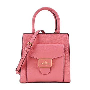 COACH 新款LOGO荔枝紋皮革手提/斜背兩用包(迷你/太妃糖粉)