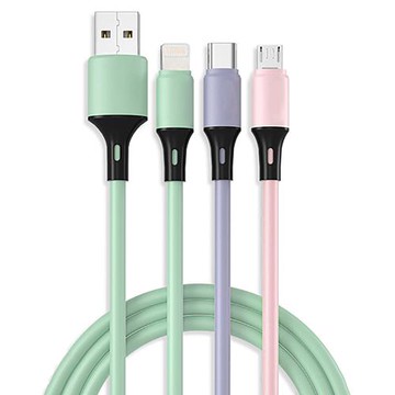 月陽三合一三色區分1.2米極速5A液態矽膠TYPEC安卓8PIN充電線無資料傳輸(AMTC312)
