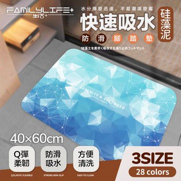 【FL 生活+】奈米硅藻土速乾防滑吸水地墊-40*60-基本款1入(A-086/單身貴族浴室首選/28色任選-硅藻泥/快乾腳踏墊/廚房/浴室/玄關)