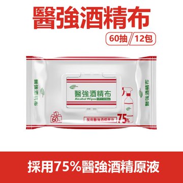 醫強75% 酒精濕紙巾 酒精布 60抽 連續易抽設計 附蓋-加大加厚款 (一箱12入)