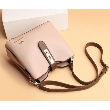 秋冬新款小香風女包撞色手提包水桶包單肩斜挎抽繩磨砂皮休閑百搭