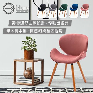 【E-home】Vigo維格流線絨布實木腳休閒餐椅
