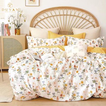 J-bedtime 床寢時光 100%純棉兩用被床包枕套4件組 SW9312M-H 床包 + 兩用被套 + 枕套 2個 雙人床包 + 雙人6x7尺兩用被套 淡香花語