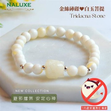 【Naluxe】金絲硨磲+白玉菩提狐仙設計款開運手鍊(天然有機寶石、佛教七寶、七月必備)