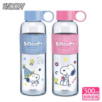 史努比小時光手提耐熱玻璃瓶(500ml)