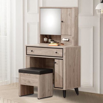 dayneeds Boise波夕木製梳妝台[附椅凳] 化妝桌/收納桌/掀鏡鏡台