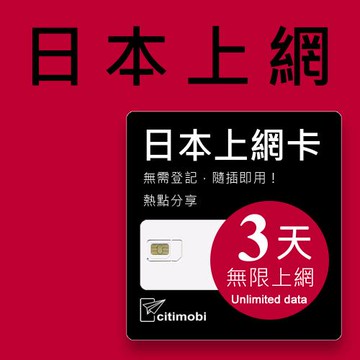 【citimobi 上網卡】日本3天上網吃到飽不限量(1GB/日高速流量)