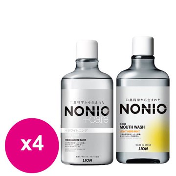日本獅王NONIO終結口氣-抗敏牙膏130gx3支+晶燦亮白漱口水600mlx4瓶