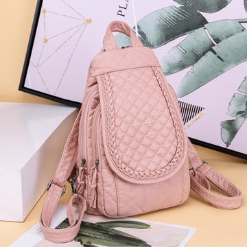 雙肩包女包菱格繡線小號背包休閑時尚軟皮簡約韓版百搭小型女士潮