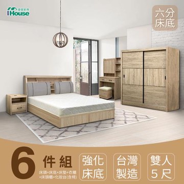 【IHouse】特洛伊 強化臥室6件組(床箱+六分底+天絲墊+床頭櫃+衣櫃+化妝台含椅) 雙人5尺