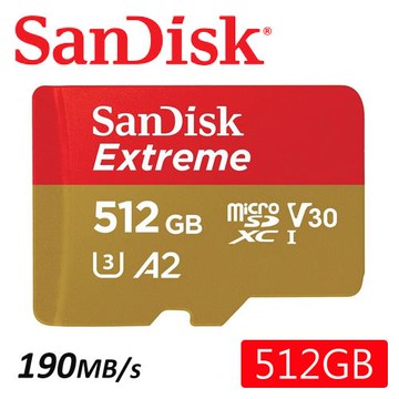點我下載SanDisk 512GB 190MB/s Extreme microSDXC U3 V30 A2 記憶卡