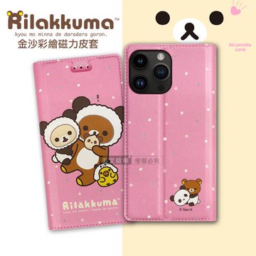 日本授權正版 拉拉熊 iPhone 15 6.1吋 金沙彩繪磁力皮套(熊貓粉)