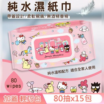 點我下載Sanrio 三麗鷗 Hello Kitty 奇幻樂園 輕巧包純水有蓋濕紙巾 80 抽 X 15 包 (加蓋) 不含添加使用更安心