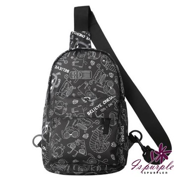 【iSPurple】怪獸塗鴉*休閒中性斜垮單肩包/黑