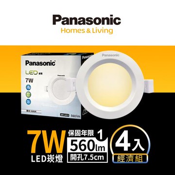 4入組 Panasonic國際牌 7W嵌燈 崁孔7.5cm LED崁燈 不眩光 全電壓 附快速接頭 保固一年 白光/自然光/黃光