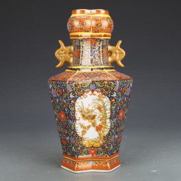 乾隆琺瑯彩六方瓶仿古瓷器花瓶