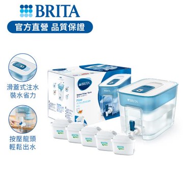 【BRITA】Flow 8.2L濾水箱+去水垢濾芯4入 共5入(白色)