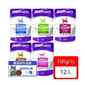 Gemon義大利啟蒙無穀主食貓餐包 x 12入組(下標數量2+贈神仙磚)