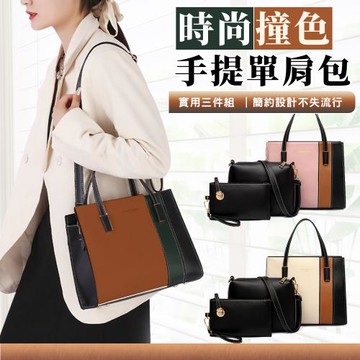 時尚撞色手提單肩包三件組 三色任選 福袋