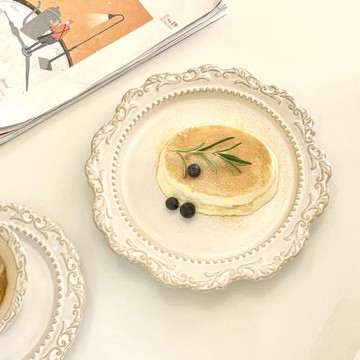 法式浮雕花邊陶瓷盤(22cm)