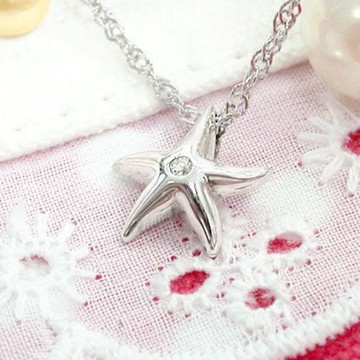 【伊飾炫銀】海星精靈*沁白心鑽銀墜項鍊