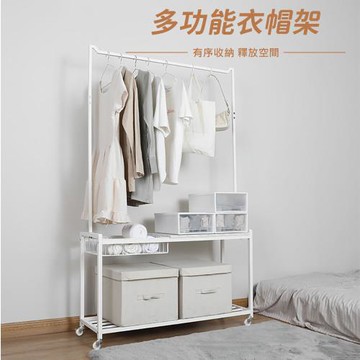 【居家cheaper】多功能落地衣帽架推車80CM寬(附輪組)