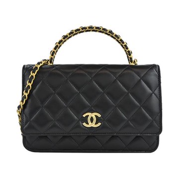 CHANEL 經典雙C菱格紋小羊皮WOC鏈帶手提/斜背包(黑色)