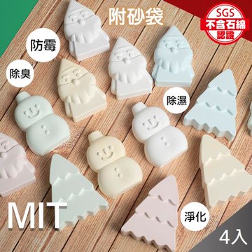 QiMart MIT聖誕造型珪藻土除濕除臭塊(款式隨機-1大1小/組)x4組