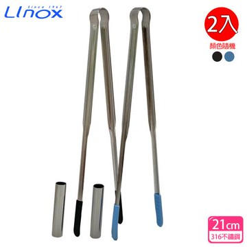 Linox 316不鏽鋼矽膠食物夾21cm(顏色隨機出貨)2入組
