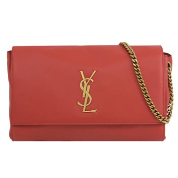 YSL 553804 KATE 小羊皮麂皮正反兩用翻蓋斜背包.紅