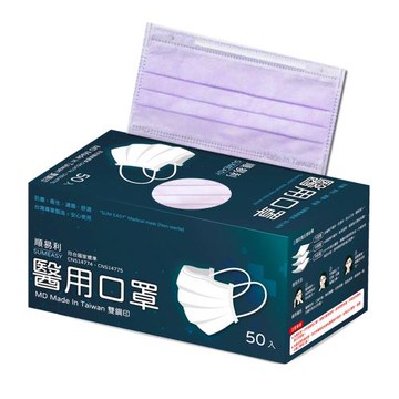 【順易利】雙鋼印成人平面醫用口罩50入(未滅菌) - 紫色