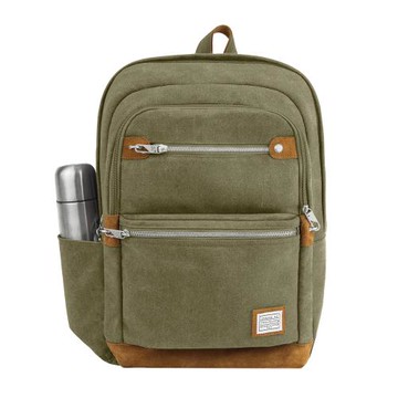 《TRAVELON》帆布四層防盜後背包(墨綠)