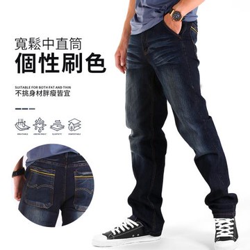 CS衣舖 寬鬆個性 中直筒丹寧牛仔長褲