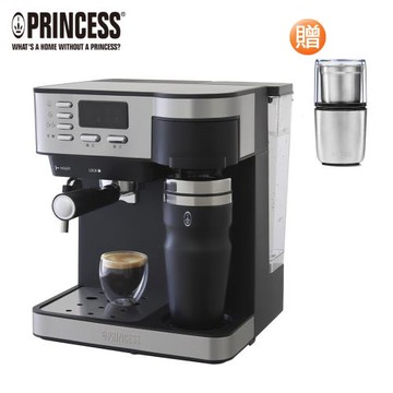 【送磨豆機】PRINCESS荷蘭公主 典藏半自動義/美式二合一咖啡機 249409