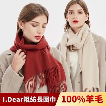 【I.Dear】100%純羔羊毛加厚保暖粗紡窄版長形長鬚圍巾(11色)現貨
