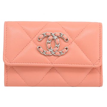 CHANEL AP1790 經典19系列小羊皮名片零錢夾.粉橘/銀