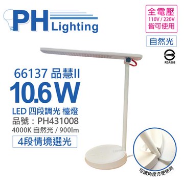 【PHILIPS飛利浦】 LED Desk light 品慧II 66137 10.6W 4000K 自然光 全電壓 四段調光 檯燈 PH431008