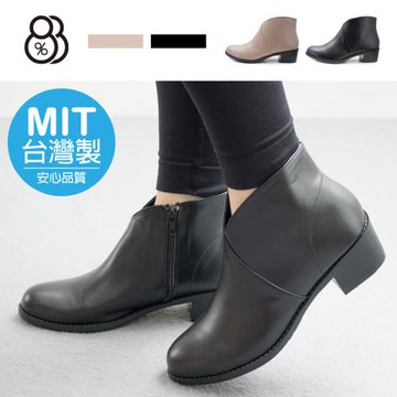 88% MIT台灣製 跟4.5cm筒高10.5cm 素色V字口設計側拉鍊粗跟尖頭短靴