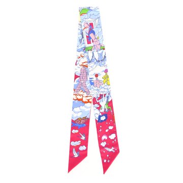 Hermes 愛馬仕Sur Mon Nuage雲端騎士 Twilly絲巾(桃粉)