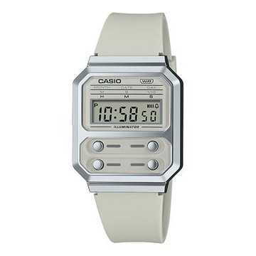 【CASIO 卡西歐】A100WEF-8A CASIO 電子錶 膠質錶帶 淡灰復古 LED照明 日常生活防水 A100W